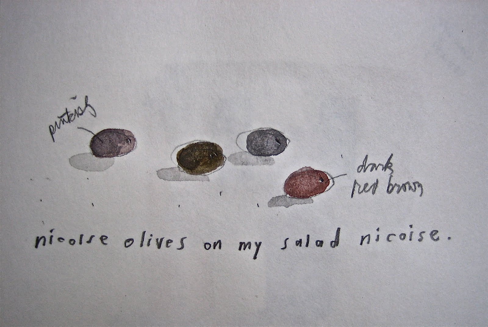 golfe-juan is a cute seaside town right on the mediterranean and 2 miles from vallauris, the town where i was living. i ran to golfe-juan every morning and swam in the mediterranean sea. it was the perfect way to start the day. one night while i was waiting for my dinner companion in front of tétou, i quickly sketched this view of the golfe-juan hills.