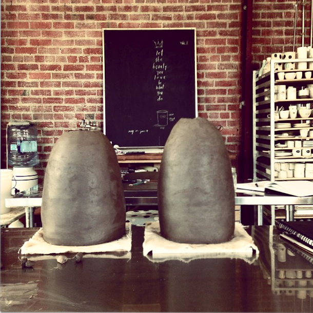 i am beginning my new work life which = less production and more one-of-a-kind work. it feels SO nice to be making more thoughtful and slow work rather than making 100 rocks or 30 plates in one sitting . . . and it makes for a more peaceful studio. i love my new life.